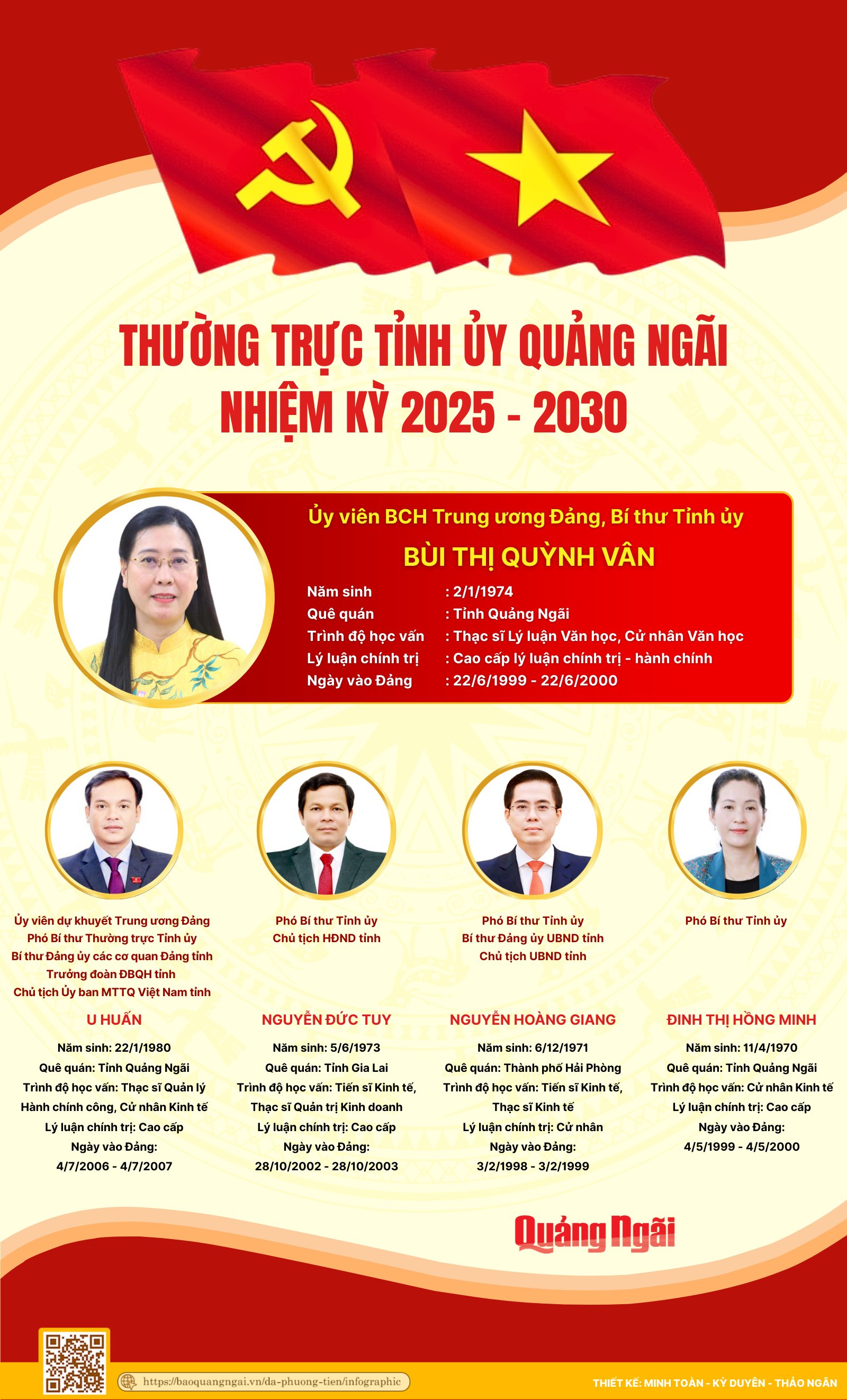 [Infographic]. Thường trực Tỉnh ủy Quảng Ngãi, nhiệm kỳ 2025 - 2030