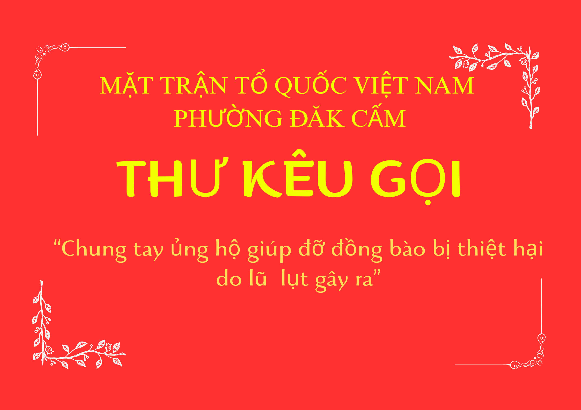 Phát huy truyền thống đoàn kết, “tương thân tương ái”, “lá lành đùm lá rách” trong toàn thể Nhân dân; được sự thống nhất của Ban Thường vụ Đảng ủy phường; Ủy ban MTTQ Việt Nam phường Đăk Cấm trân trọng kêu gọi các cơ quan, đơn vị, tổ chức, doanh nghiệp; các nhà hảo tâm trong và ngoài phường; cán bộ, công chức, viên chức, lực lượng vũ trang và Nhân dân trên địa bàn phường cùng chung tay ủng hộ cả về vật chất và tinh thần để hỗ trợ đồng bào Miền Trung đang chịu thiệt hại do bão, lũ lụt gây ra.