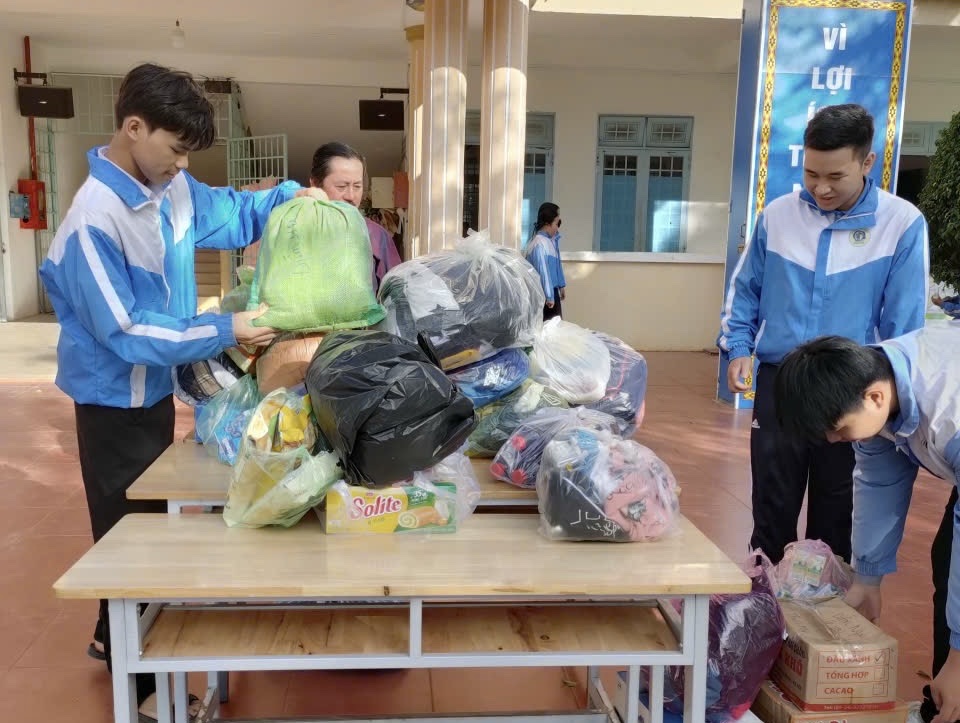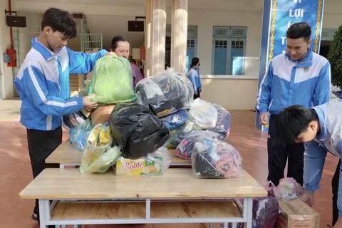 Mới đây, Trường THCS - THPT Ngô Mây, phường Đăk Cấm đã tổ chức hoạt động quyên góp, hỗ trợ người dân xã Hòa Thịnh, tỉnh Đắk Lắk (vùng rốn lũ thuộc huyện Tây Hòa, tỉnh Phú Yên cũ) khắc phục hậu quả sau đợt mưa lũ vừa qua. Hoạt động do Câu lạc bộ “Nối vòng tay lớn” phát động đã thu hút đông đảo sự tham gia của cán bộ, giáo viên, nhân viên, phụ huynh và học sinh toàn trường. Ngay sau phát động, nhà trường đã tiếp nhận và chuyển đến bà con xã Hòa Thịnh hơn 600 quyển vở, 3 bao sách, 4 bao áo ấm, 2 bao mền, 3 bao quần áo, hơn 50 thùng mì tôm cùng nhiều nhu yếu phẩm thiết yếu khác như gạo, sữa, nước suối, nước mắm...
