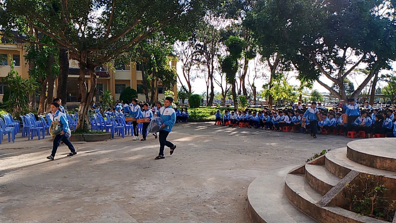 Trường THCS - THPT Ngô Mây hỗ trợ hơn 600 quyển vở và nhu yếu phẩm cho xã Hòa Thịnh, tỉnh Đắk Lắk